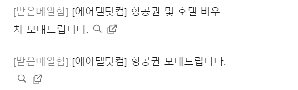 메일에는 항공권 및 호텔 바우처 및 기타 안내사항 등이 포함되어있어요.